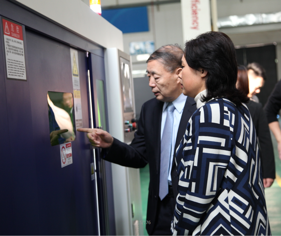 在孫文董事長陪同引導下,京山縣考察團首先對奔騰激光進行了實地考察。