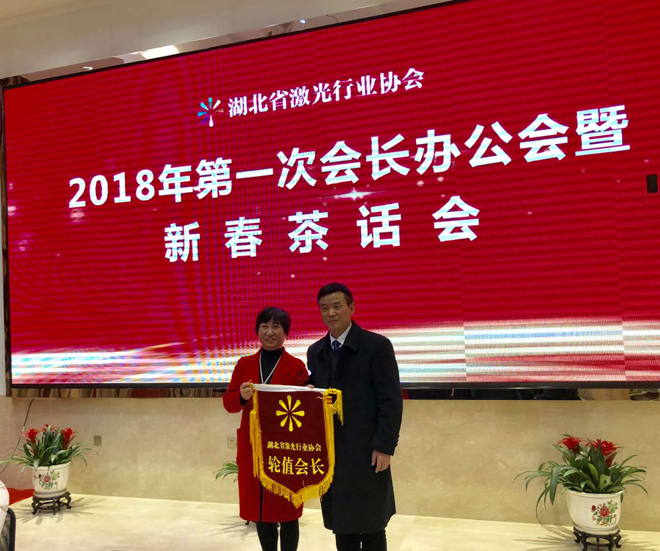 會(huì)議第三部分,對(duì)省激光協(xié)會(huì)2018年3月-2019年1月輪值會(huì)長(zhǎng)名單進(jìn)行了討論和確定,并對(duì)3月輪值會(huì)長(zhǎng)單位逸飛激光進(jìn)行授旗。